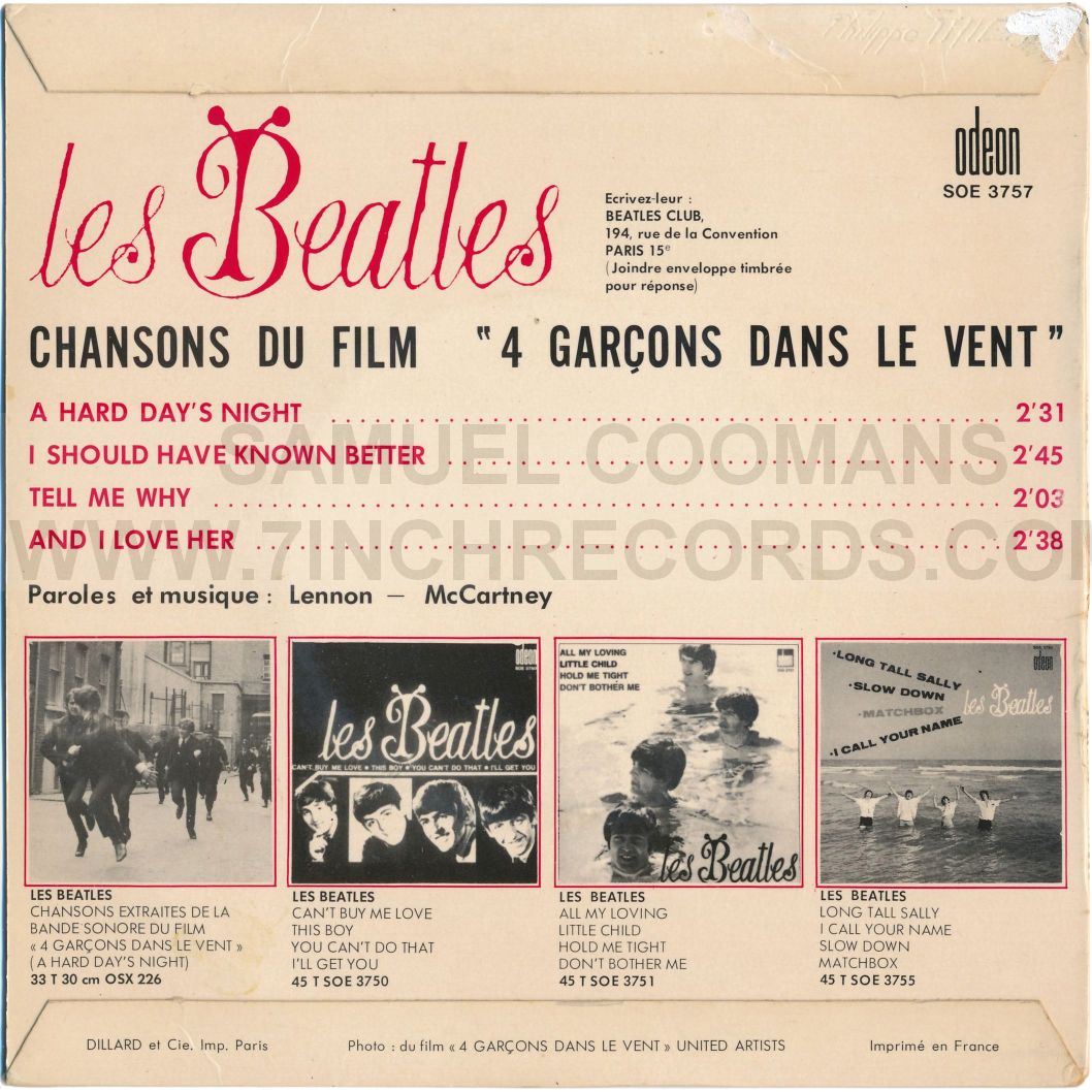 Back of sleeve Album cover for OSX 226 was not ready yet La France et Les Beatles - Type 1